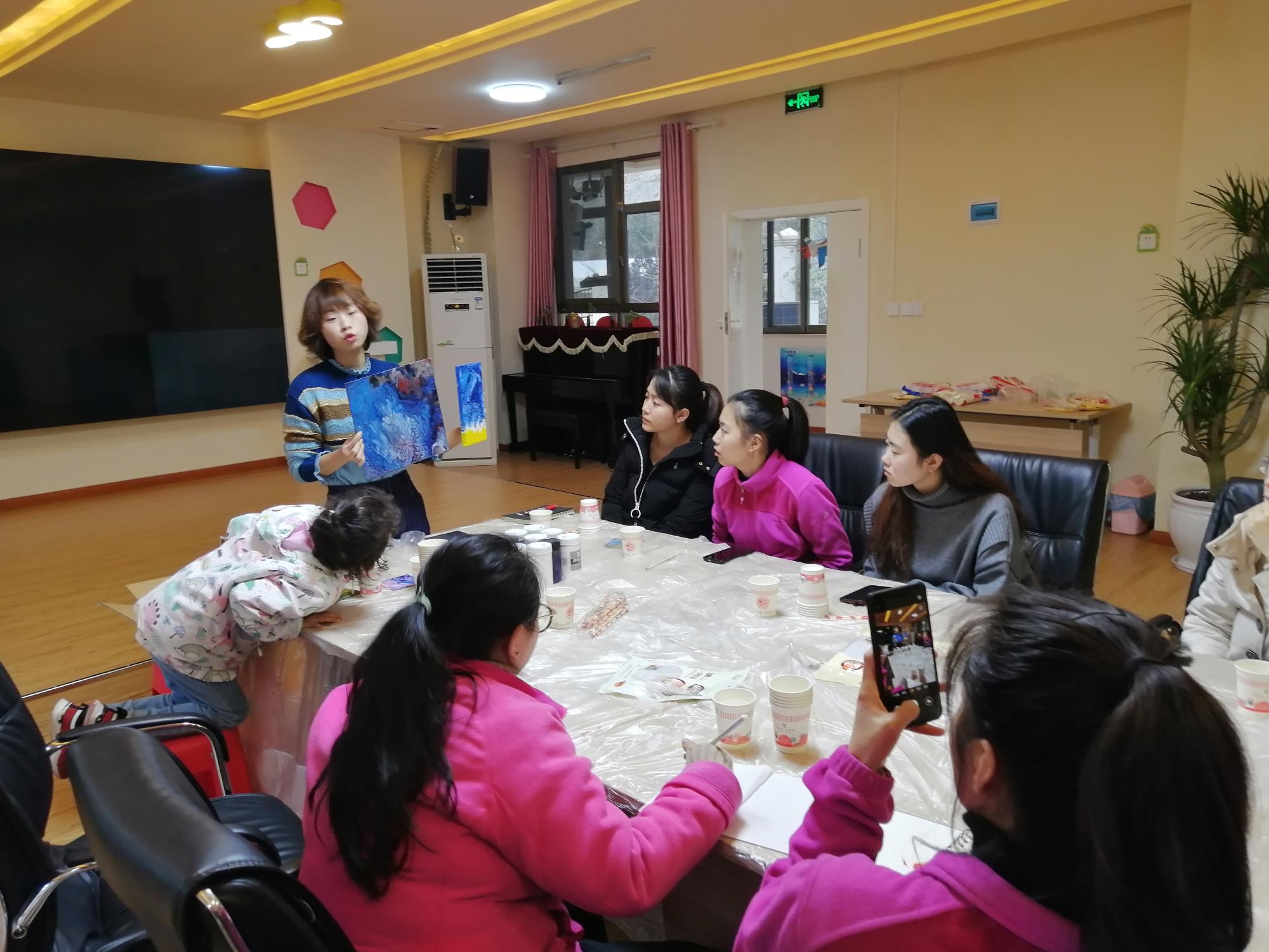 2019年12月19日,bwin必赢线路检测中心申利丽副教授到南明区后巢中心幼儿园为幼儿园教师进行了《创意流体画》培训。